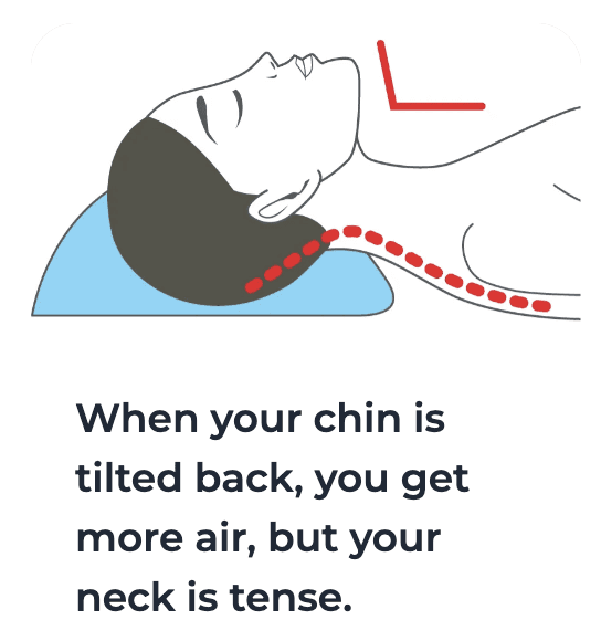 When the head tilts too far forward while sleeping, the airway can become narrower, which may lead to louder breathing.