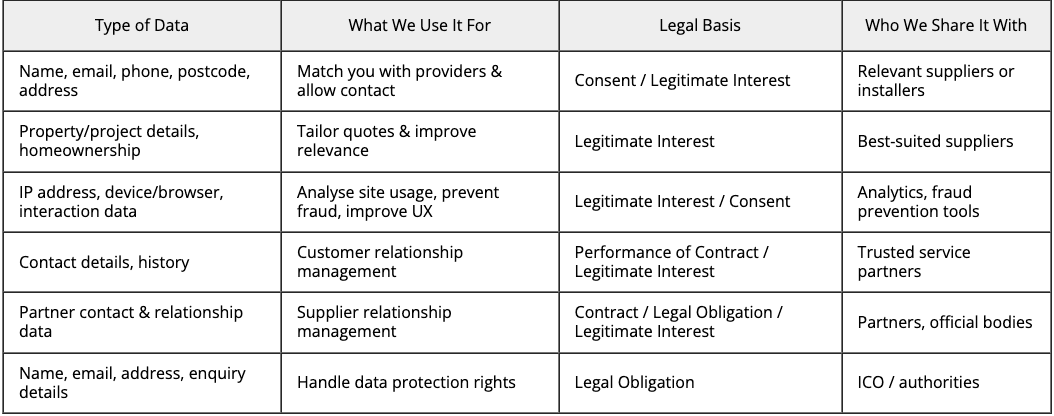 We help you make smarter decisions when buying rarely purchased but expensive items like windows, boiler upgrades, or solar panels.